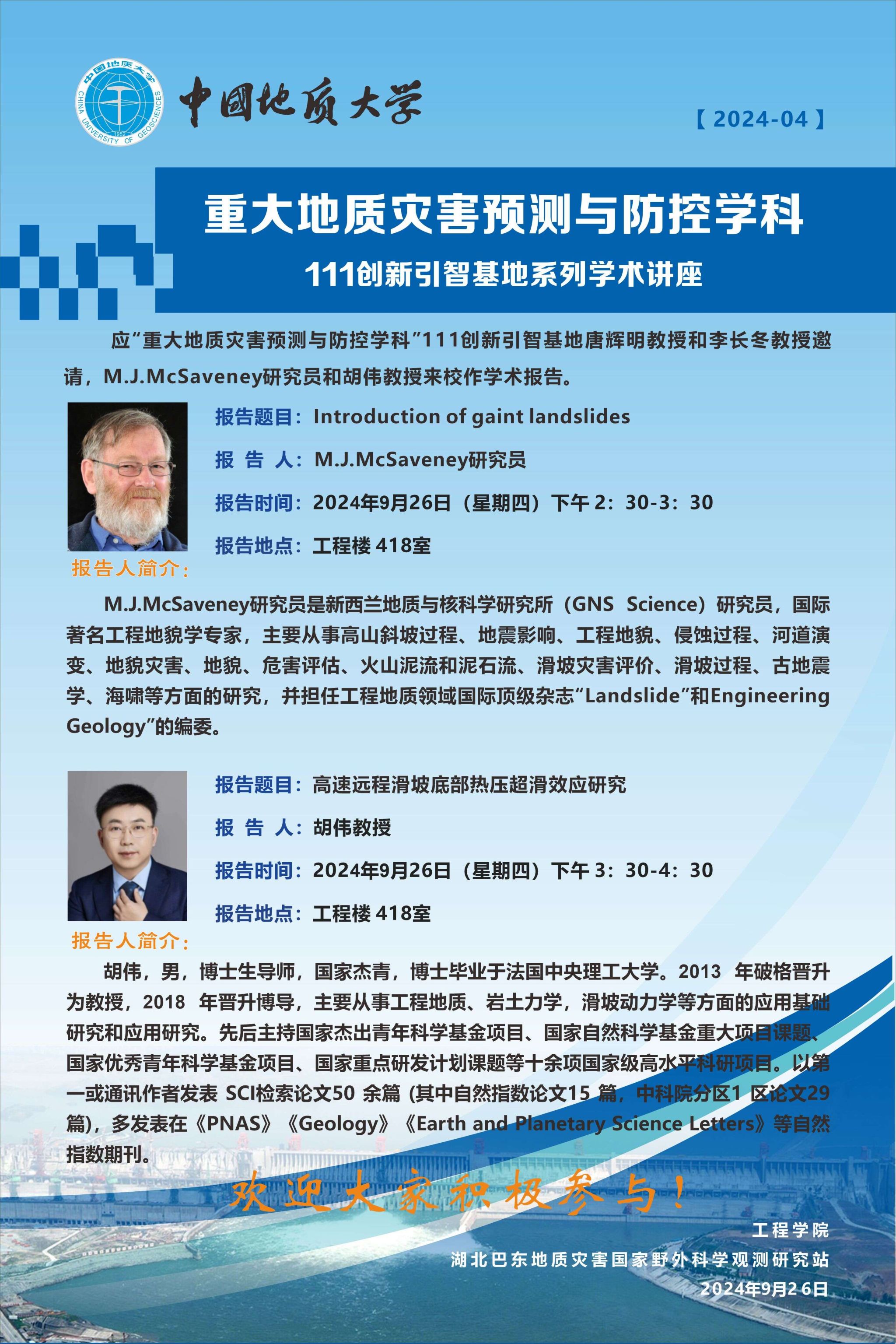 111创新引智基地讲座2024-04期(M.J.McSaveney、胡伟)
