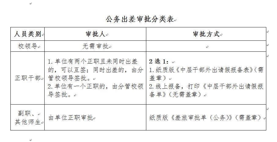 公务出差审批分类表