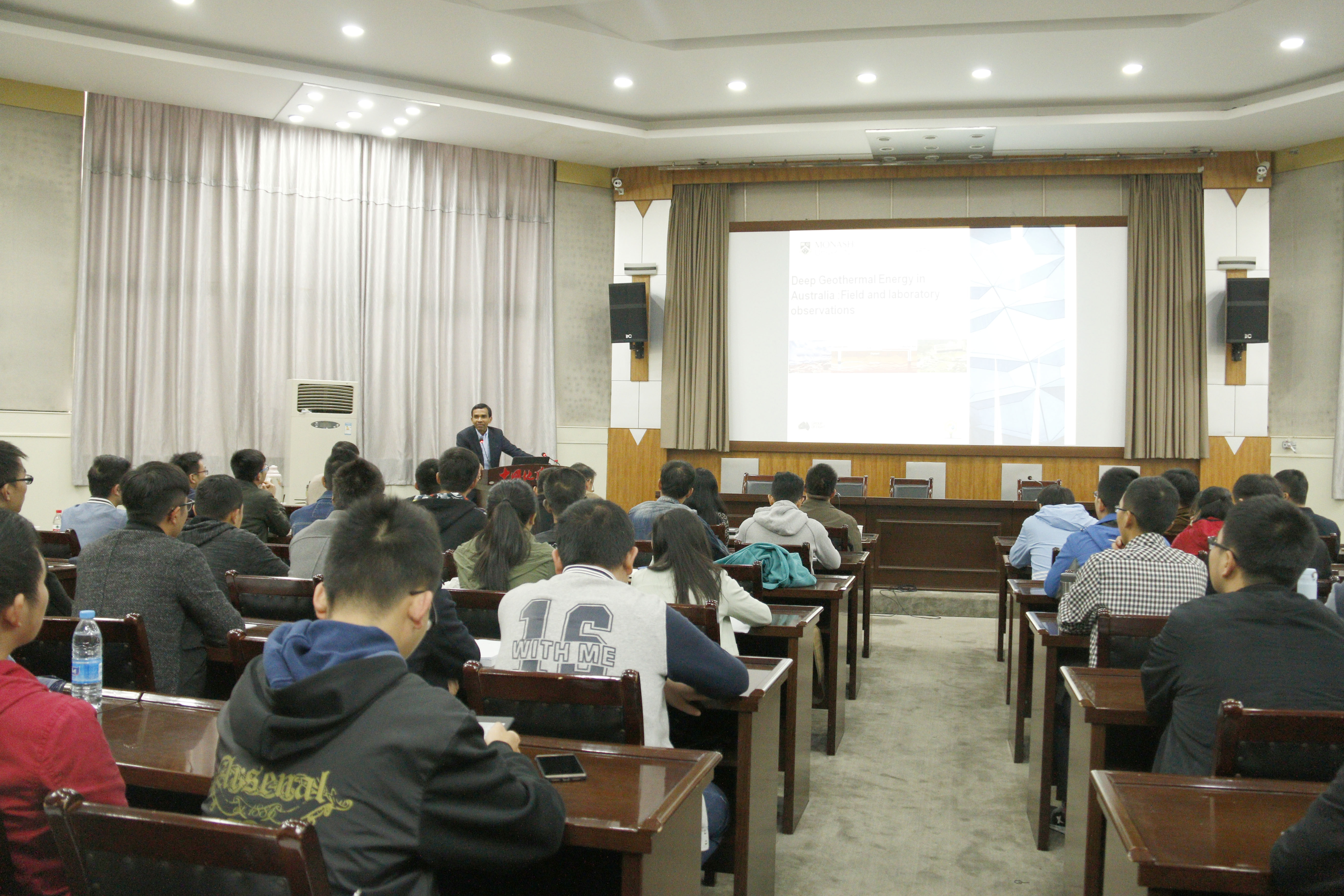 10月17日下午,澳大利亚莫纳什大学深部地球能源实验室主任Ranjith Pathegama Gamage教授来校作了主题为“Enhanced Geothermal Energy prospects in Australia: Field and laboratory observations”的学术报告。Beat365正版唯一官网必一院长焦玉勇教授主持了报告会,学院200余名师生聆听了报告。