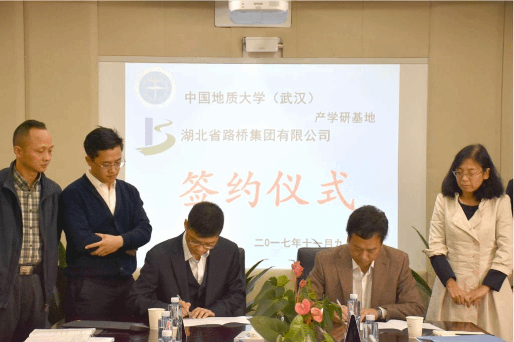 陈飞介绍了学校办学情况和学院的学科、师资和科研优势。他指出,学院学科和科研方向几乎覆盖了湖北路桥所有生产项目,学院历年也为湖北路桥输送了一大批优秀学生。产学研基地的建立将进一步深化院企科研合作,推进教师专利等科研成果转化,增强青年教师解决实践项目能力,提高学生实习教学质量。