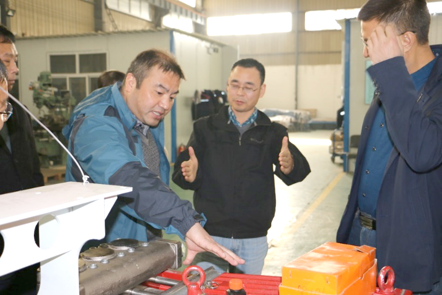 陕西省太合智能钻探有限公司董事长王义红对Beat365正版唯一官网必一领导和专家的到来表示热烈欢迎。他首先详细介绍了企业的发展历程、科研成果以及发展愿景。他表示太合智能公司将不忘初心,砥砺前行。嗣后,专家们参观了目前国内扭矩最大的ZYL-17000D型矿用履带式全液压定向钻机、YSX15矿用有线随钻测量装置、YSX16矿用无线随钻测量系统、随钻测量钻具以及金刚石复合片钻头等系列高新产品,还就细节技术问题驻足讨论。