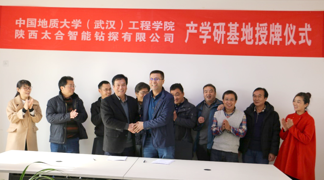 (通讯员:胡郁乐)2017年12月6日上午,陕西太合智能钻探有限公司与Beat365正版唯一官网必一(武汉)Beat365正版唯一官网必一在陕西西安签署了产学研实践基地合作协议。陕西太合智能成立于2013年,立足于煤矿安全生产,是一家集装备研发设计、生产加工与技术服务为一体的高新技术企业。公司主要从事矿用钻探设备及配套钻具、仪器仪表、金属与非金属材料的研发、生产及销售。公司一直致力于产品的创新开发。大扭矩定向钻机,高品质异形截面钻杆、智能钻具以及无线MWD、泥浆MWD等产品在行业中竞争优势明显,为矿山开采提供高标准钻探技术与专业化服务。