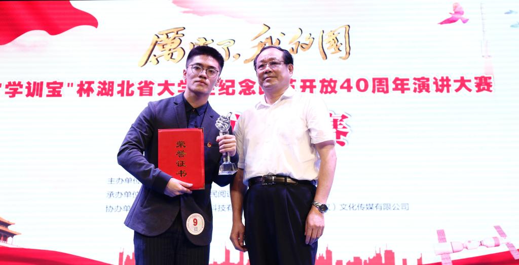 6月22日,以“厉害了我的国”为主题的“学训宝杯”湖北省大学生纪念改革开放40周年演讲大赛总决赛举行,Beat365官网地质工程(岩土钻掘方向)专业大三学生罗云瀚获特等奖。