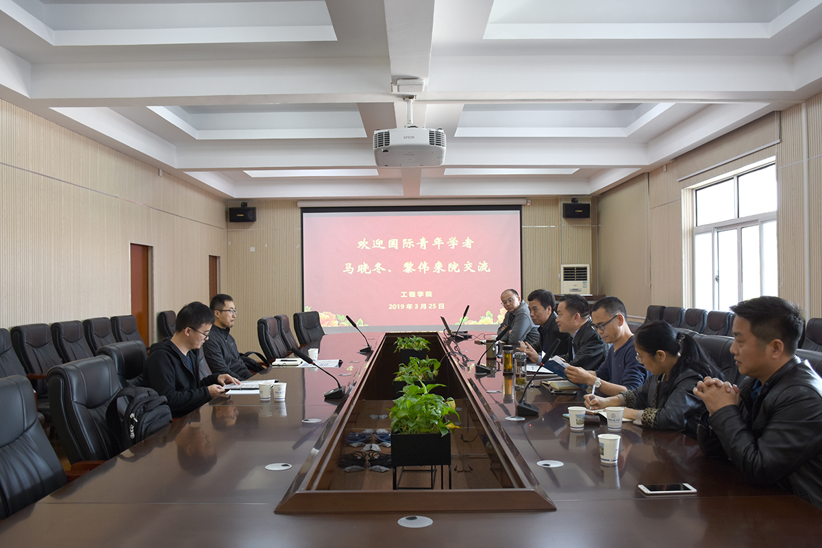 2019年3月25日下午14点30分,第三届“国际青年学者地大论坛”Beat365正版唯一官网必一分论坛在工程楼315会议室拉开帷幕。院党委书记陈飞、院长焦玉勇、副院长罗学东、副院长窦斌、副院长倪晓阳、院党委副书记江广长、院长助理李长冬及两位国际青年学者马晓冬、黎伟参加座谈会。