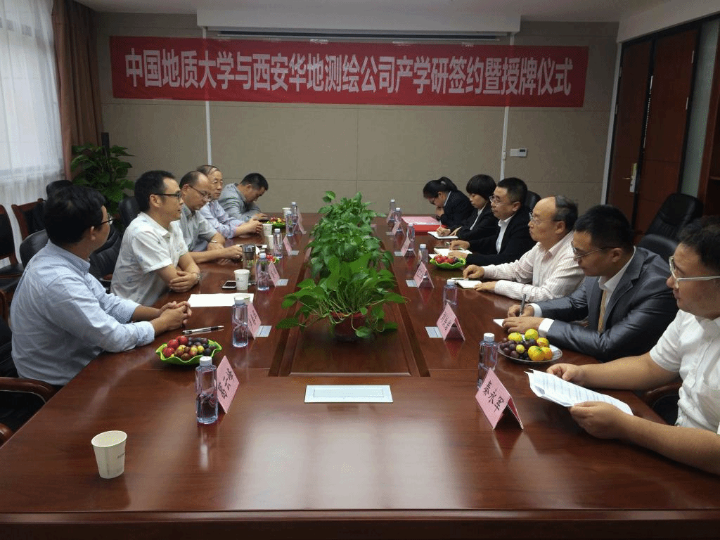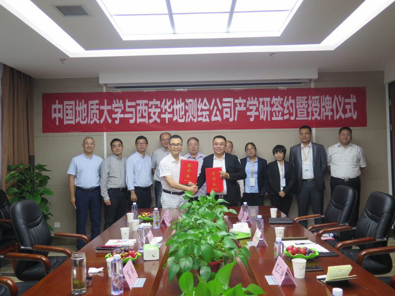 2019年9月15日-9月17日,Beat365正版唯一官网必一(武汉)Beat365正版唯一官网必一党委副书记江广长、副院长窦斌、勘察与基础工程系主任卢春华、姚爱国教授、院工会主席蔡记华教授及工程地质与岩土工程系葛云峰副教授一行赴西安,先后走访了陕西西探地质装备有限公司和西安华地测绘科技有限公司,并与陕西西探地质装备有限公司召开了产学研合作基地揭牌仪式,与西安华地测绘科技有限公司签订了产学研合作协议并进行揭牌。