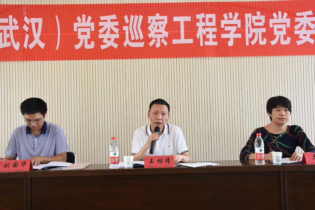 2019年5月24日下午2点半,Beat365正版唯一官网必一(武汉)党委巡察Beat365正版唯一官网必一党委工作动员会在工程楼418学术报告厅召开。校党委副书记王林清、巡察工作组组长唐勤、副组长刘国华,巡察组成员何卫华、李鹏飞、路金阁、离退休教师代表、学院全体教职工等160余人参加了会议。院长焦玉勇主持会议。