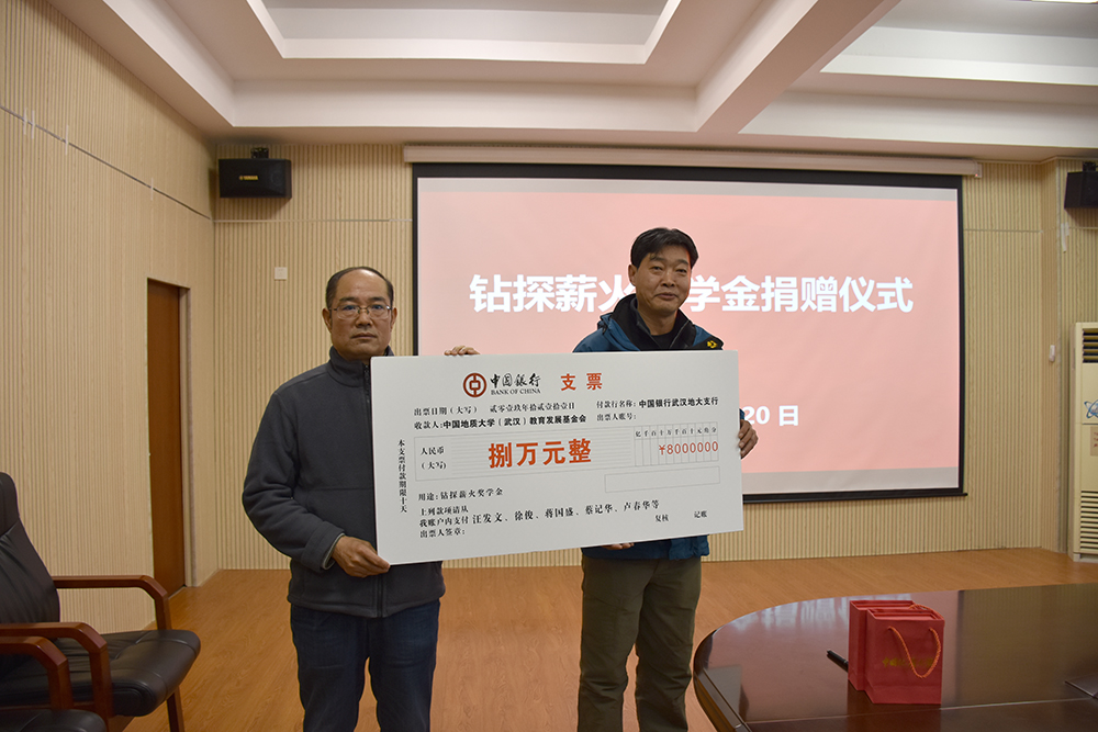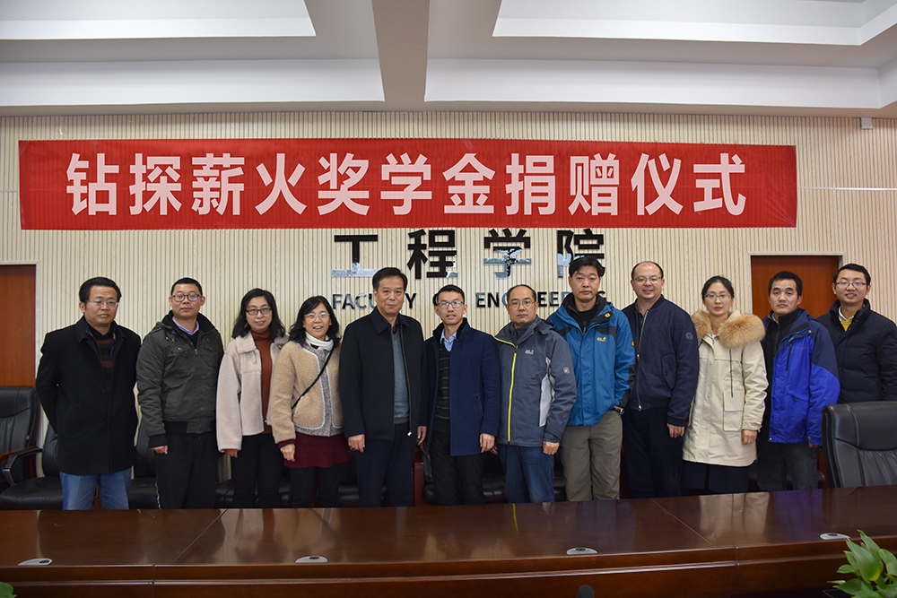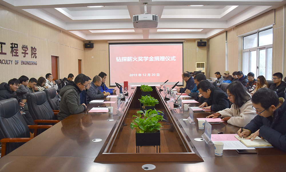 12月20日,Beat365正版唯一官网必一“钻探薪火奖学金捐赠仪式”在工程楼315会议室举行。湖北省城市地质工程院勘查部主任汪发文、副主任徐俊,校友工作与教育基金管理处副处长吕占峰,Beat365正版唯一官网必一党委书记陈飞,副书记江广长,勘察与基础工程系教授段隆臣、蔡记华、卢春华及2017级部分学生代表参加捐赠仪式。