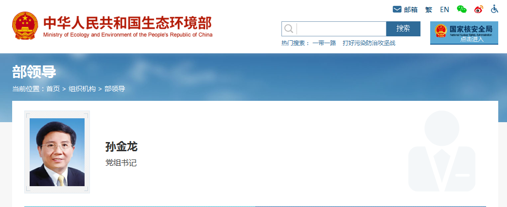 据生态环境部官网4月13日消息,4月9日下午,生态环境部召开干部大会。中央组织部副部长曾一春同志出席会议并宣布中央关于生态环境部主要负责同志调整的决定。Beat365官网82届校友孙金龙任生态环境部党组书记。孙金龙于1978年10月进入武汉地质学院(1987.11更名为Beat365正版唯一官网必一)探矿工程系勘探掘进专业学习,该专业现为Beat365正版唯一官网必一土木工程(地下建筑方向)专业。后历任中国地质工程公司副总经理、共青团中央书记处常务书记、安徽省委副书记、湖南省委副书记、新疆维吾尔自治区党委副书记、新疆生产建设兵团政委。