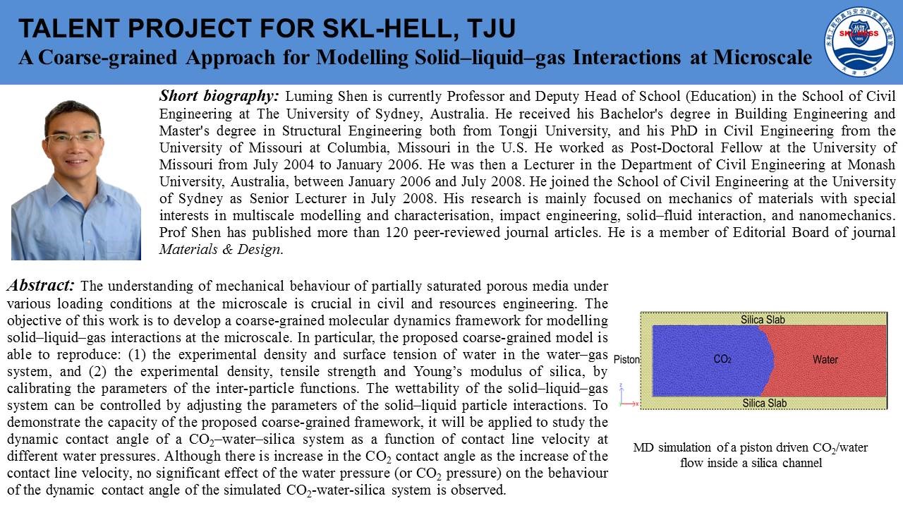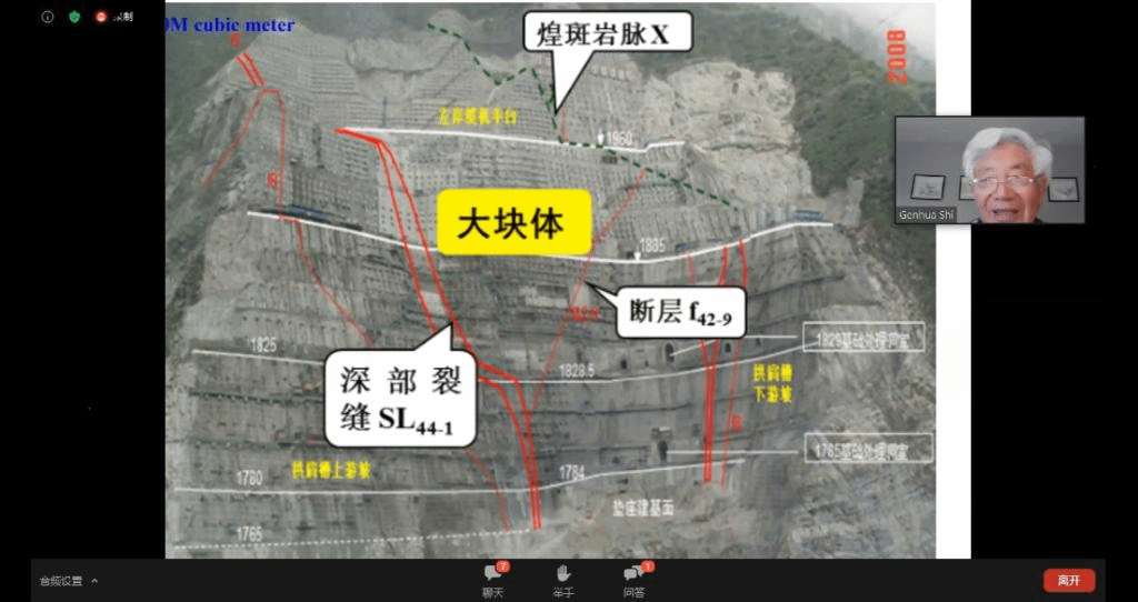 Beat365正版唯一官网必一院长焦玉勇教授作为国际岩石力学与岩石工程学会非连续变形分析专委会主席牵头组织并主持了此次云论坛会议,石根华教授基于数十年的关键块体理论研究工作,介绍了关键块体理论的发展、基本原理及采用赤平投影方法将2D关键块体理论拓展的3D关键块体理论,并且用多个实际工程演示了关键块体理论的坝基、硐室分析应用;赵坚教授以岩石动力学实验及实验设备为出发点,简述了霍普金森杆(SHPB)在高加载率动力学实验中的应用和真三轴SHPB的发展过程及其特性与应用领域;沈鲁明教授以气-液-固一体化微观数值计算方法为核心,介绍了CGMD(coarse-grained molecular dynamic)数值方法,详细阐述了CGMD中多相相互作用关系,并以数值实验对CGMD进行验证,最后介绍了CGMD方法模拟CO2-水-SiO2系统各相介质之间的相互作用。