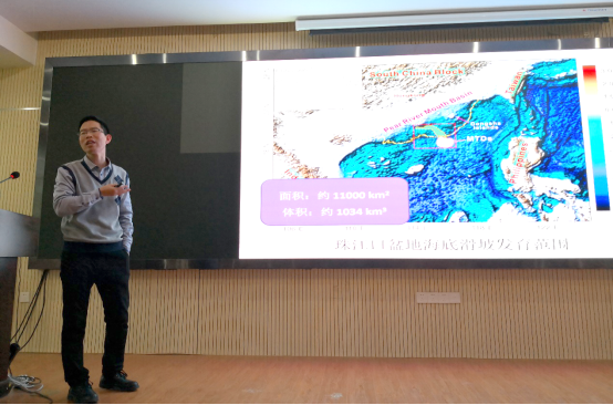 孙启良教授围绕南海北部珠江口盆地发育面积达11000km2、体积达1034km3的巨型海底滑坡,介绍了根据三维立体图的分析得到该盆地发育了四期较大的海底滑坡;阐述了沉积填充方式、构造、浅层气和海平面变化对海底滑坡的发生具有较大影响,且通过恢复原始体积计算得到海底滑坡的原始体积要比它的残存体积大约18%;分析了海底滑坡触发海啸对南海周缘及岛屿的灾害影响等最新研究成果。