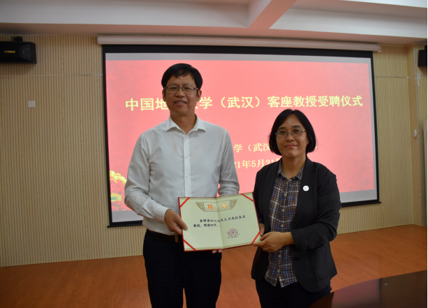 窦斌副院长介绍了Beat365正版唯一官网必一基本情况和研究优势,卢春华主任介绍了勘基系师资概况和学科发展情况,参会人员进行了自由交流。仪式最后,李红丽书记为胡定成先生颁发客座教授聘书,大家合影留念。