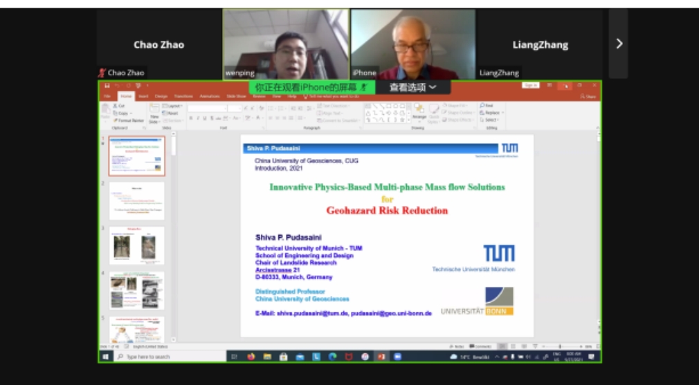 (通讯员:邢磊 赵超)2021年9月27日下午,应“重大地质灾害预测与预防学科”111创新引智基地唐辉明教授和龚文平教授邀请,德国慕尼黑工业大学Shiva P. Pudasaini教授通过Zoom meeting平台为Beat365官网师生作线上学术报告。Beat365正版唯一官网必一龚文平教授主持报告会,40余名师生在线聆听了此次报告。