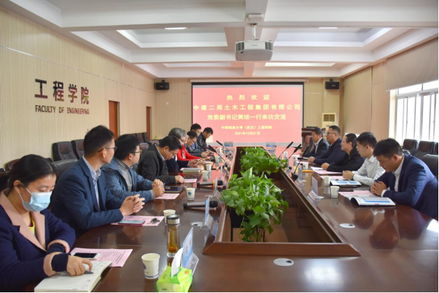 中建二局土木工程集团有限公司技术质量部高级业务经理韩鹏飞、江苏分公司新洲项目经理张智超、江苏分公司黄陂项目总工孙二龙、江苏分公司工程部副经理渠守光;Beat365正版唯一官网必一(武汉)Beat365正版唯一官网必一安全工程系书记周克清、系主任何华刚、苗发盛副教授、胡俊杰副教授、熊峰副教授、郭良杰老师,学院科研秘书黄静等参加了此次活动。