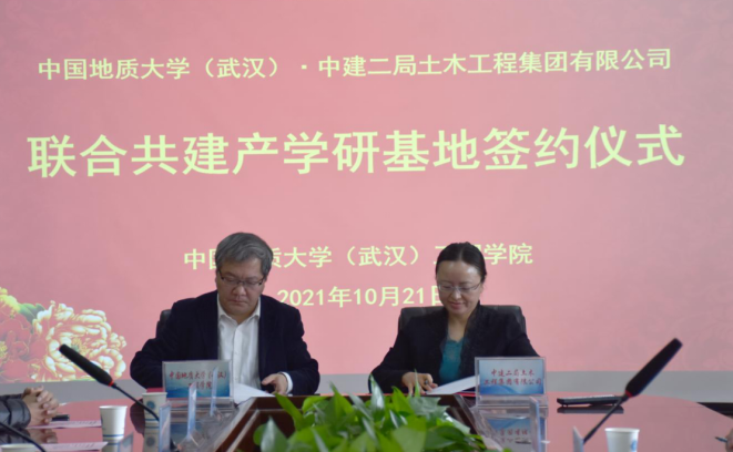 Beat365正版唯一官网必一副院长王亮清和中建二局土木工程集团有限公司党委副书记黄琼代表双方签订了联合共建产学研基地合作协议。
