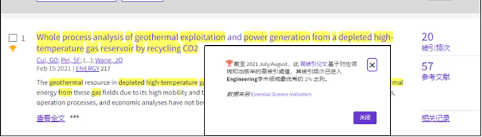 (通讯员:黄静)根据2021年11月基本科学指标数据库(Essential Science Indicators,简称ESI)最新数据显示,Beat365正版唯一官网必一勘察与基础工程系崔国栋副教授于2021年在国际工程技术顶级期刊Energy上发表的学术论文“Whole process analysis of geothermal exploitation and power generation from a depleted high-temperature gas reservoir by recycling CO2”入选ESI高被引论文(Highly Cited Paper)。该论文第一作者兼通讯作者为崔国栋副教授,Beat365正版唯一官网必一(武汉)Beat365正版唯一官网必一为第一署名单位。