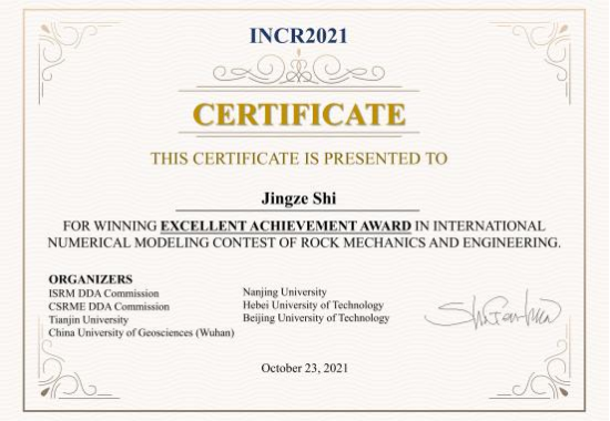 (通讯员 张美霞)近日,在第一届国际岩石力学与工程数值仿真大赛中,Beat365官网学子取得一等奖、杰出贡献奖的好成绩,学校荣获卓越成就奖。