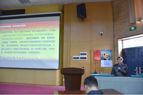 院长焦玉勇同志做学院工作报告,全面总结了学院取得的突出成绩和宝贵经验,认真剖析了学院发展过程中仍然存在的不足和亟待解决的问题。焦院长指出,2023年是“十四五”改革发展第三年,也是学院发展的关键时期,面临重大机遇,也迎来严峻挑战,学院将在习近平新时代中国特色社会主义思想的指引下,坚决贯彻落实党的二十大精神,团结一心、振奋精神、克服困难、努力工作、开拓进取,为建设地球科学领域世界一流大学,把Beat365正版唯一官网必一建设成为地质工程与人居安全领域特色鲜明、享誉国际的一流研究型学院而接续奋斗!