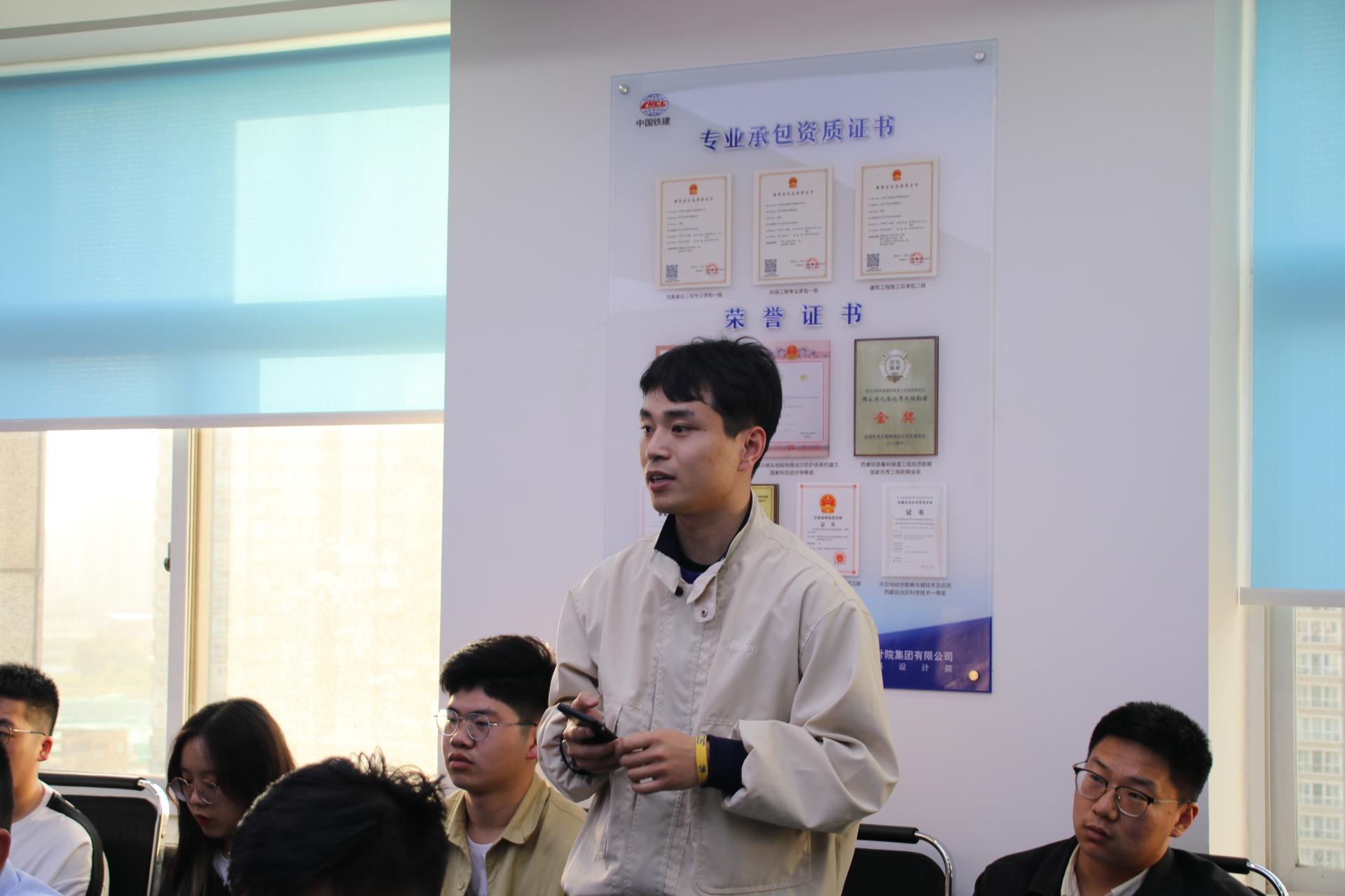 在互动交流讨论环节,同学们结合铁一院的业务特点,对入职后工作的侧重点、博士生的招聘及工作情况、实习生招聘等内容进行了询问。企业相关负责人对同学们提出的问题进行了详细的解答和说明。