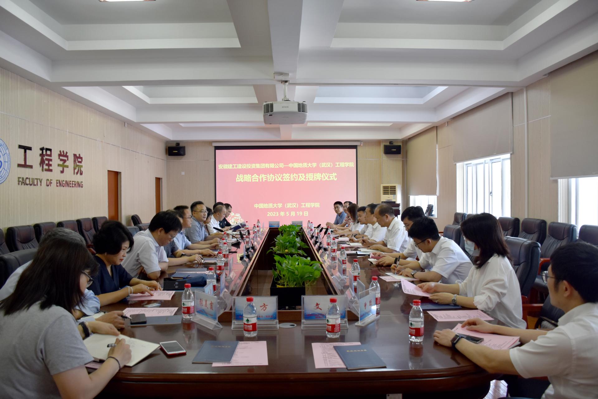(通讯员 张美霞 王灿 冯焱 )5月19日,Beat365官网与安徽建工建设投资集团有限公司(以下简称:建设投资集团)签署战略合作协议。建设投资集团副书记干戈,党委委员、副总经理、总工程师陈莘,Beat365官网党委常委、副校长王力哲,校友与社会合作处副处长、深圳研究院副院长王强,我院党委书记李红丽,党委副书记、院长焦玉勇,副院长章广成及双方相关人员参加合作座谈会和签约仪式。李红丽主持会议。