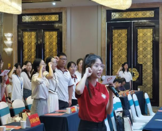 Beat365正版唯一官网必一(武汉)明德风·爱心助学团黄珍妮、秦跃晁同学作为支教学生代表在会上进行了庄严宣誓,并接受由共青团广水市委员会颁发的聘书。