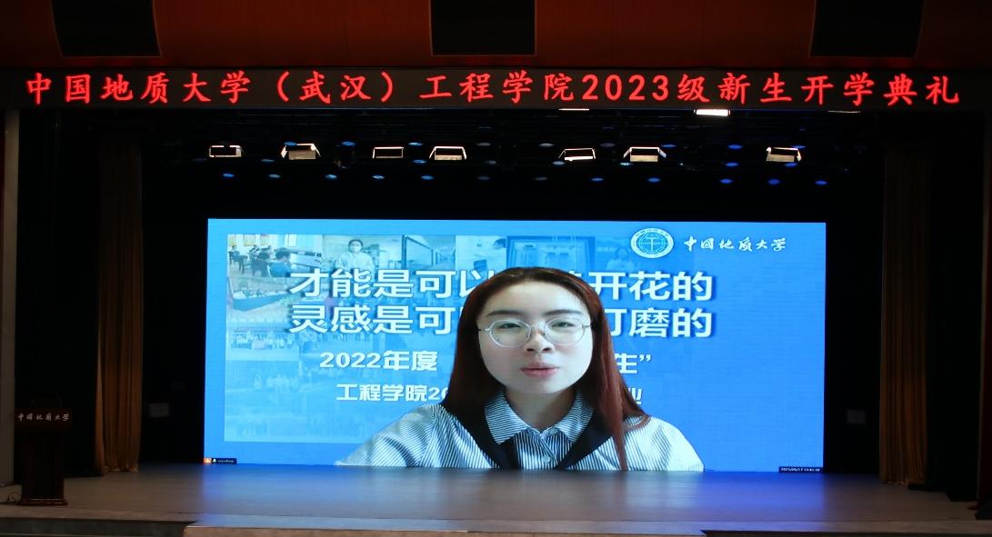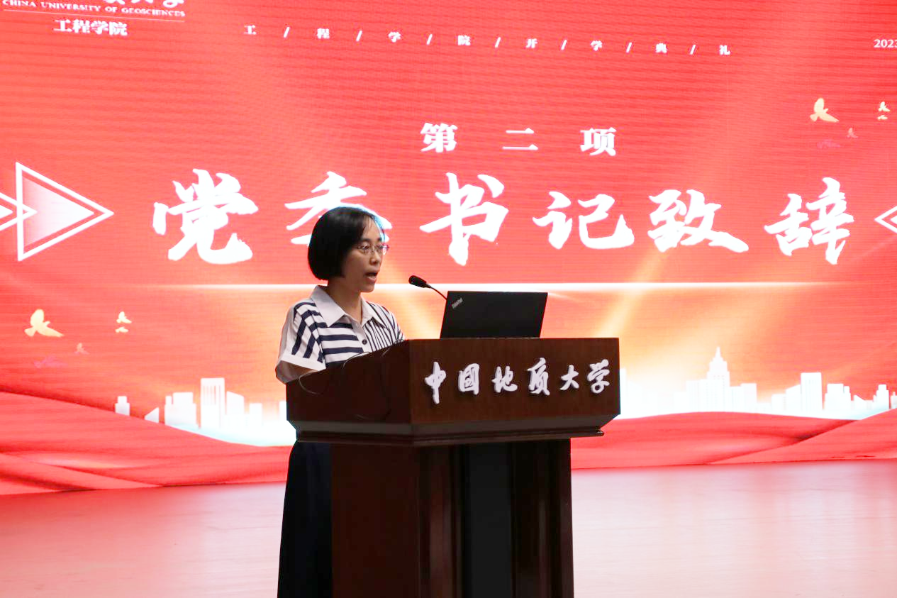 Beat365正版唯一官网必一党委书记李红丽致辞。李书记首先代表全院师生员工对加入Beat365正版唯一官网必一的860名新成员致以热烈的欢迎,祝福同学们选择了Beat365正版唯一官网必一这个温暖而又奋进的大家庭。她指出,当代大学生正值云程发轫、万里可期的青春韶华,要全面学习学院的辉煌历史,深刻感受学院的使命担当,铭记院训深意,争做时代栋梁。要“明理”,即明辨是非,通晓道理,要明白做人之理、为学之理、尊法之理;要“尚实”,即崇尚务实作风,要在实处用力,在知行合一上下功夫;要“拓新”,即开拓创新,要面向世界科技前沿、面向经济主战场、面向国家重大需求、面向人民生命健康,解放思想,开拓创新,与时俱进;要“砺行”,即砥砺前行,在攻坚克难中磨砺心性,坚守初心,锻造本领,成长成才。她勉励同学们以院训精神为指引,树牢远大志向、矢志不懈奋斗,努力学习,潜心科研,乐观开朗,积极向上,做堪当时代大任的新时代地大工程人,为建设社会主义现代化国家做出属于青年一代的贡献。