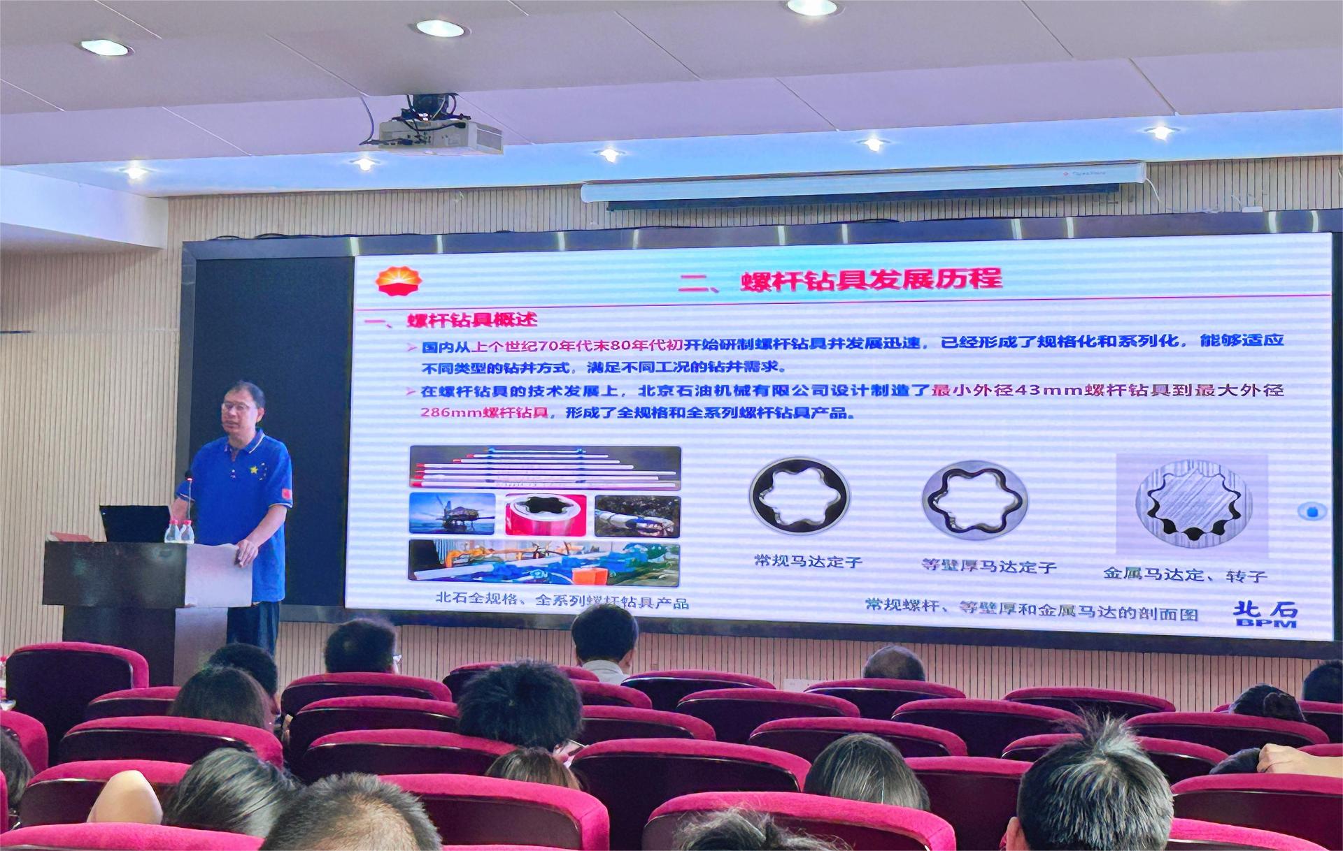 于兴胜高级工程师的报告以“螺杆钻具介绍及国外螺杆钻具最新技术进展”为题,从螺杆钻具发展历史、结构性能、类型,以及螺杆钻具在钻井过程中易发生的问题及解决措施、国外螺杆钴具最新技术进展等五个部分展开讲述。他从螺杆钻具的发展历程出发,引出了井下动力钻具的发展不断朝着“大扭矩、高功率、耐高温”的方向迈进,通过介绍螺杆钻具的工作原理和各部分组成的结构与功能,指出了螺杆钻具中易受损的部分位于万向轴总成部分。通过讲述螺杆钻具现场使用操作步骤,指出了螺杆钻具在应用中常见的故障及其排除方法。最后,于兴胜高级工程师总结了国外螺杆钻具的最新技术进展及特点。报告对我国螺杆钻具技术的发展具有重要的参考价值。