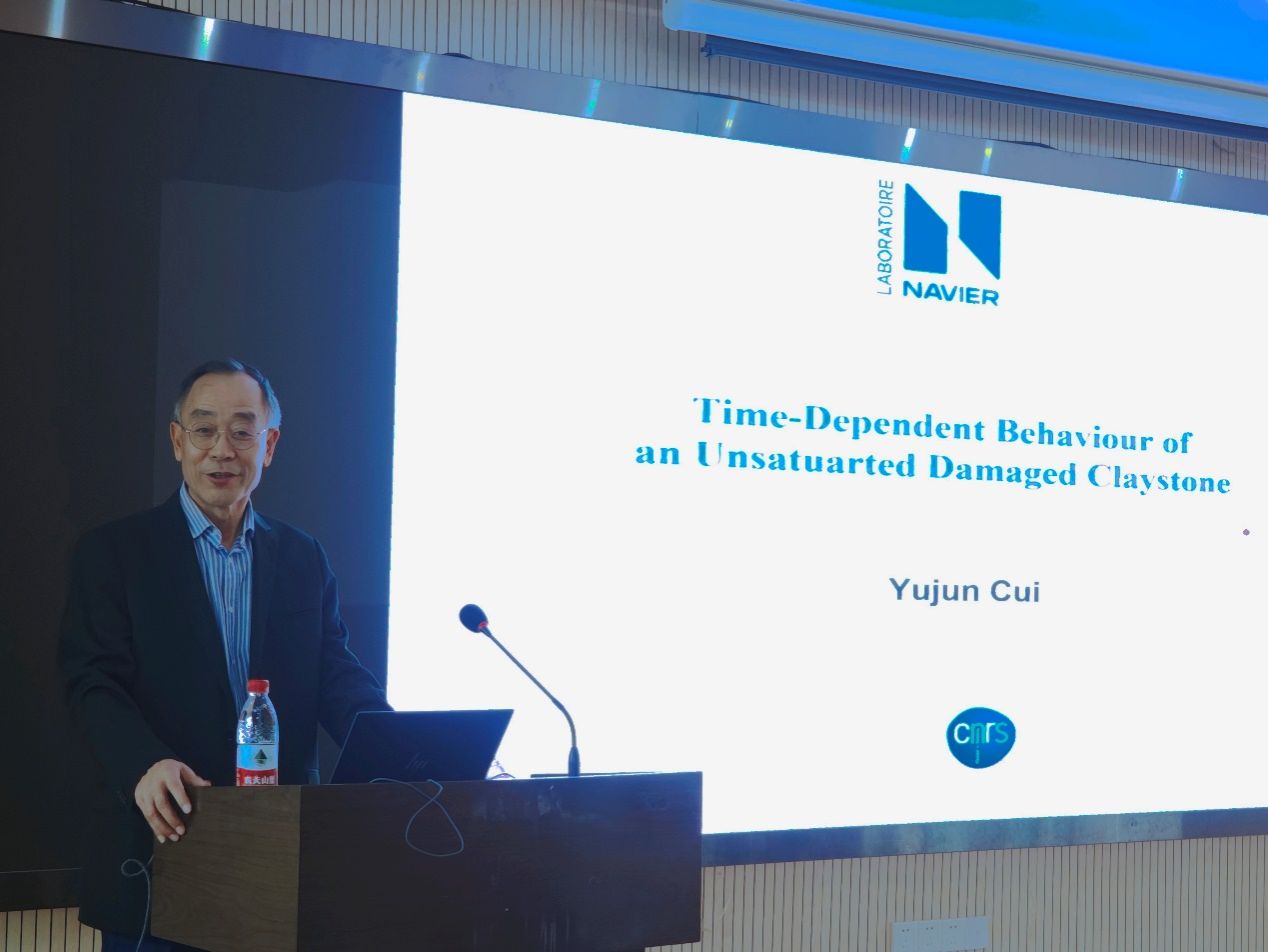 (通讯员 张峰 黄静)2023年10月31日上午,应Beat365正版唯一官网必一唐辉明教授和张峰特任教授的邀请,法国国立路桥大学Navier实验室岩土中心(CERMES)主任崔玉军教授来校访问,并作了题为“Time-dependent behaviour of unsaturated damaged claystone”的学术报告。唐辉明教授主持了报告会,李长冬教授、周佳庆特任教授、张峰特任教授、崔德山副教授、任兴伟副教授等100余名师生在现场参加了此次报告会。