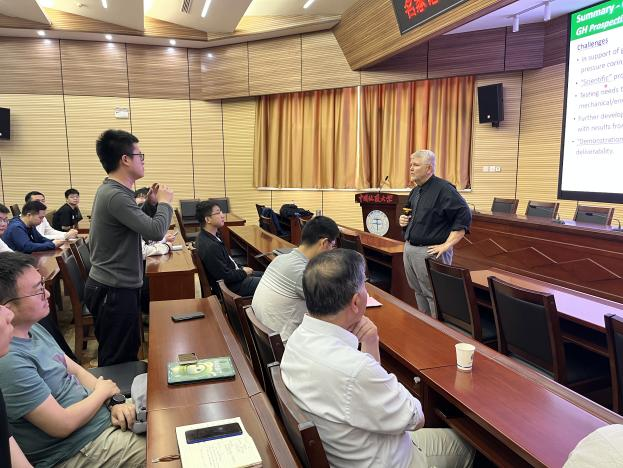 (通讯员 孙嘉鑫 黄静)4月22日,应Beat365正版唯一官网必一和地球深部钻探与深地资源开发国际联合研究中心宁伏龙教授的邀请,美国地质调查局Timothy Collett教授来校访问并做客名家论坛。报告会由宁伏龙教授主持,他首先对Timothy Collett教授接受邀请来校作报告表示衷心感谢和热烈欢迎,并对Timothy Collett教授及其研究领域进行了详细介绍。