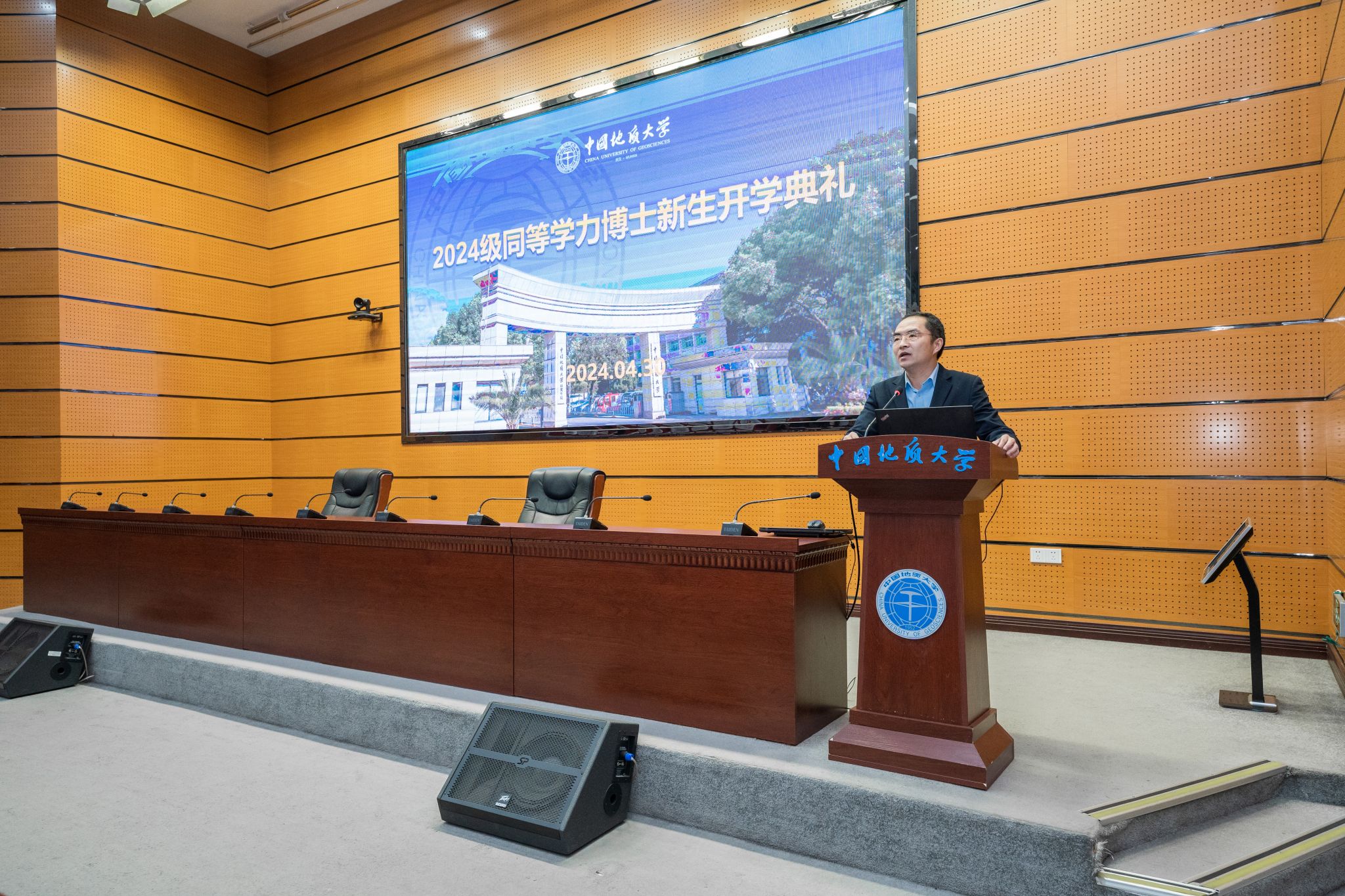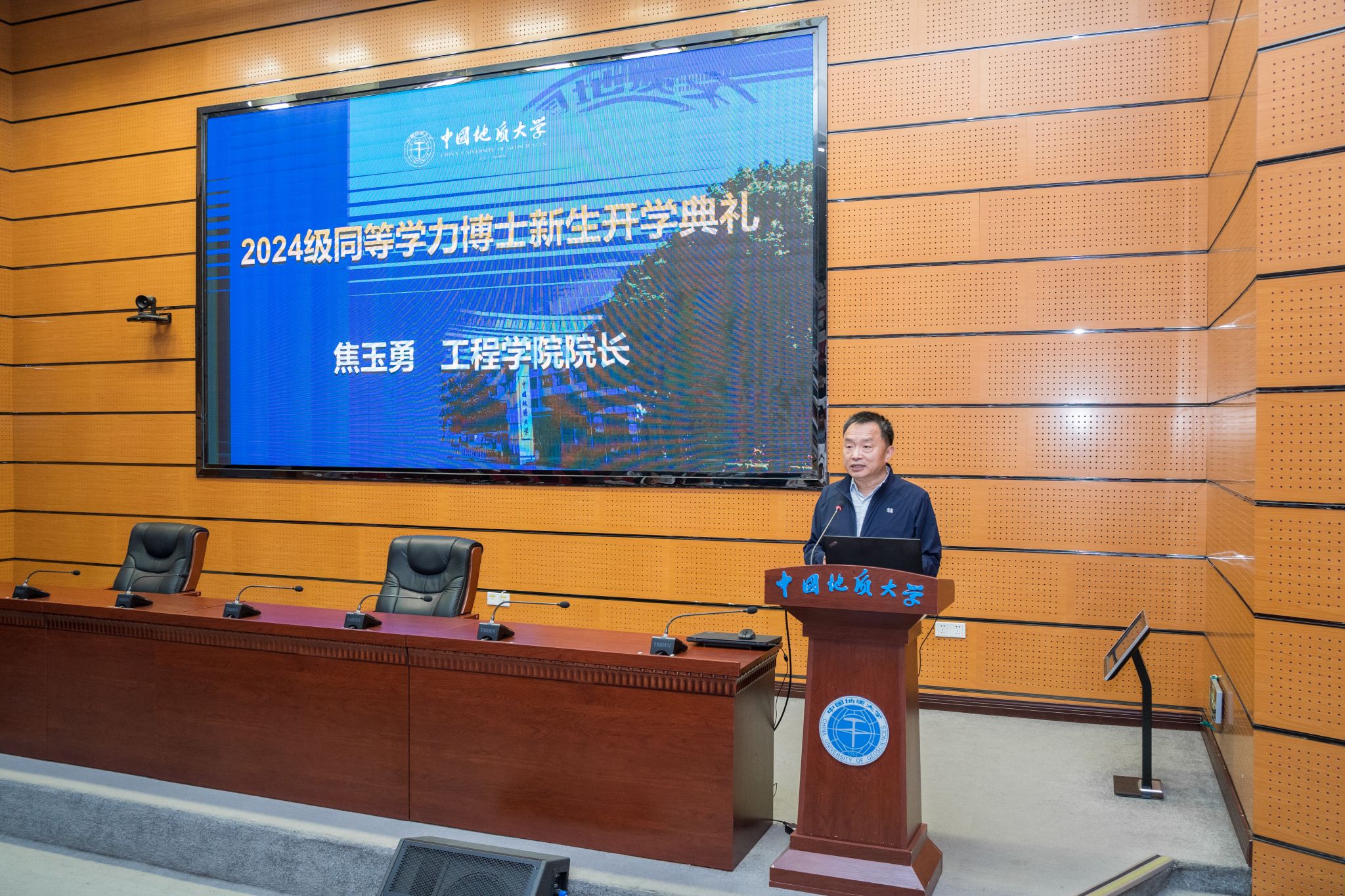 副校长王华向今年新入学的87名同等学力申请博士学位研究生表示欢迎并对学校的基本情况做了介绍。他说,办学70多年来,地大始终坚守着“艰苦朴素、求真务实”的校训,始终保有扎根中国、胸怀天下、勇攀高峰、追求卓越的攀登精神。如今,地大多学科协调发展的学科生态体系得到了良好的构建,不但能培养领军人才、理论创新型人才,还可以在实战解决国民经济主战场中起到关键作用。对新生同学他也提出了两点建议:一是珍惜机会,努力学习,接续奋斗;二是符合时代的要求,跟上时代的步伐。他希望同学们不忘初心,牢记使命,努力提升服务国家重大战略、国家资源、能源生态环境、区域经济社会发展、可持续发展等的战略能力和技术能力,为学校达到地球科学领域世界一流贡献力量,为建设美丽中国宜居地球提供人才和科技支撑贡献智慧和才华。