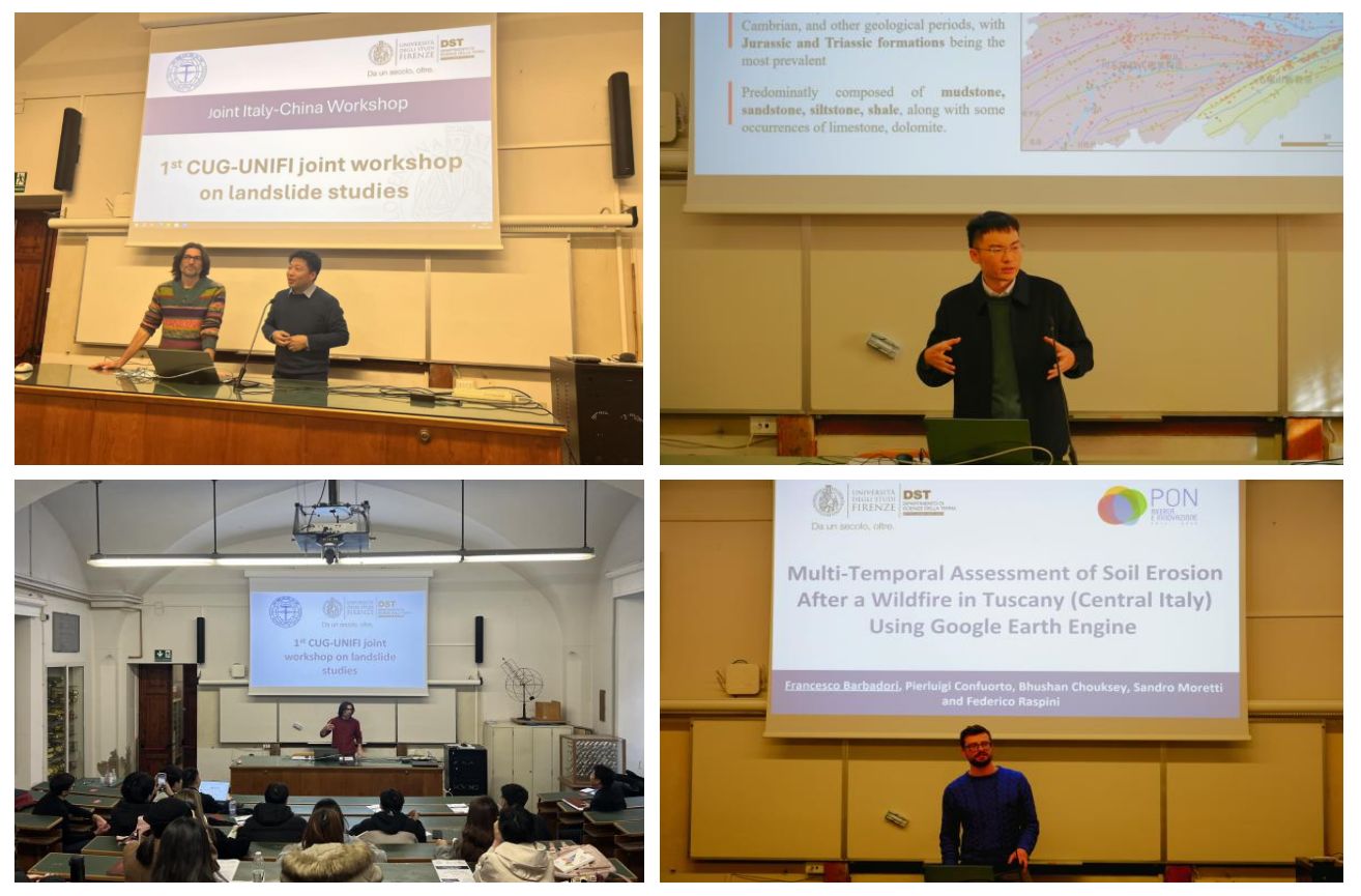 1月8日至9日,Beat365正版唯一官网必一师生和佛罗伦萨大学师生开展了为期2天的中意滑坡研究联合研讨会。Beat365正版唯一官网必一李德营教授、刘书豪老师与朱仕林、佘祥杰、王凯等博士生和佛罗伦萨大学Samuele Segoni教授、 Nicola Nocentini、 Francesco Barbadori、Istan Szakolczai等博士连续开展了十余场专题讲座,内容涵盖“高度植被覆盖地区潜在滑坡的识别”“基于机器学习方法的滑坡时空预测”“考虑地质环境空间差异性的区域滑坡降雨阈值研究”“使用谷歌地球引擎对托斯卡纳山火后的水土流失进行多时间尺度评估”等主题,两校师生就上述主题进行了广泛深入的研讨交流。