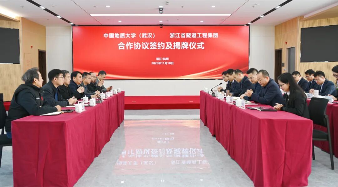 王文起表示,浙江省隧道工程集团有限公司作为浙江省自然资源集团骨干企业,在隧道施工、水利市政、地质工程等领域拥有扎实的产业基础和丰富的工程场景,为深化产教融合提供了重要平台。学校将依托科教资源和人才优势,共建“研究生联合培养基地”与“地质e站”,推动师资协同、项目共研与成果转化,完善“订单式”人才培养与常态化交流机制。他希望双方携手打造校企协同、共生共赢的示范平台,共同服务行业进步与国家战略。
