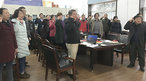 系党支部书记贾洪彪同志组织大家学习了党的十九大报告。重点学习的内容:(1)党的十九大主题;(2)新时代中国特色社会主义思想和基本方略;(3)新时代中国特色社会主义思想八个“明确”;(4)加快建设创新型国家、实施区域协调发展战略等新发展理念;(5)新时代党的建设总要求。十九大报告举旗定向、高瞻远瞩、大气磅礴。