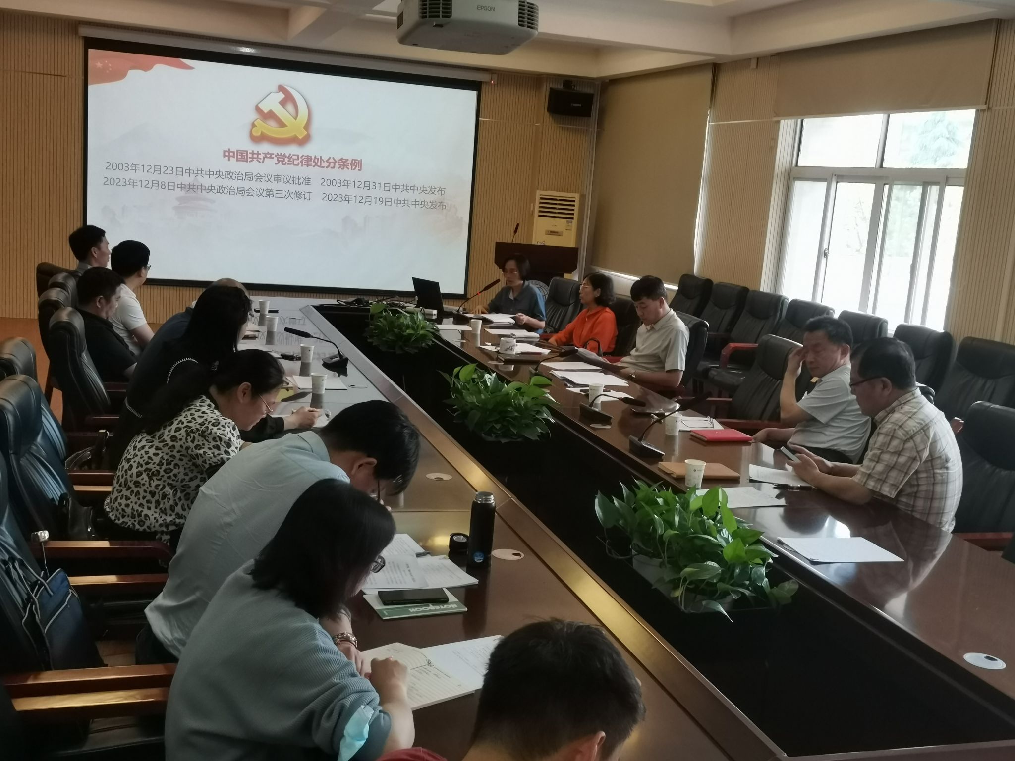 会上,李红丽书记详细解读学校党委印发的《党纪学习教育实施方案》通知精神,部署Beat365正版唯一官网必一“党纪学习教育专题读书班”学习计划和要求。她强调,学院各级党组织和师生党员要循着理论学习、实践教育、文化涵养“三条路径”,聚焦学习《条例》、警示教育、解读培训“三种方式”开展党纪学习教育。党委理论学习中心组成员要带头执行党纪学习教育各项要求,六位党员领导干部要分别领学“六项纪律”内容,要在学习教育活动中做到原原本本学、逐条逐句学,结合案例学、联系实际学,要将党纪学习教育体现在学院落实全面从严治党、党风廉政建设和反腐败工作的职责任务当中,要将党纪学习教育与贯彻落实中央八项规定精神、锲而不舍反对“四风”以及严守师德师风和意识形态主阵地关联起来,要将党纪学习教育融入学院党的建设、教育教学、人才培养、科学研究、文化涵养、社会服务等工作当中,进一步提升学院各级党组织和全体师生党员的党性、党风、党纪水平。随后,按照坚持原原本本、逐条逐句学党纪的要求,李红丽领学了《条例》第六章:对违反政治纪律行为的处分,党委副书记、纪委书记高晓东领学了《条例》第八章:对违反廉洁纪律行为的处分,并结合实际工作交流学习体会。