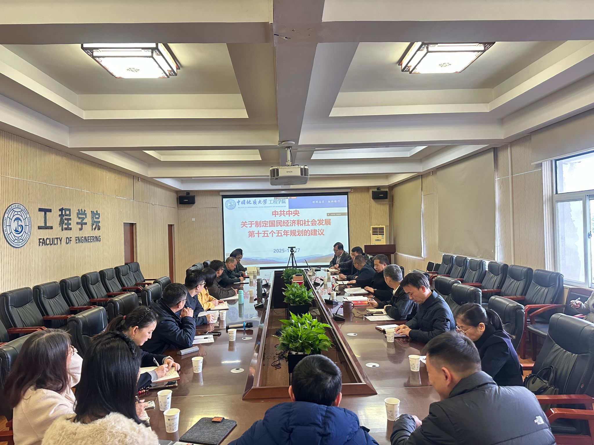 院党委副书记、院长王亮清同志领学了《中共中央关于制定国民经济和社会发展第十五个五年规划的建议》、《学校关于开展“十四五”事业改革发展总结验收、“十五五”规划编制工作的通知》。王院长要求学院领导班子成员带头学习文件要求,吃透政策精神,结合学院实际,围绕大国工匠,科技领军人才需要,规划好学科建设。