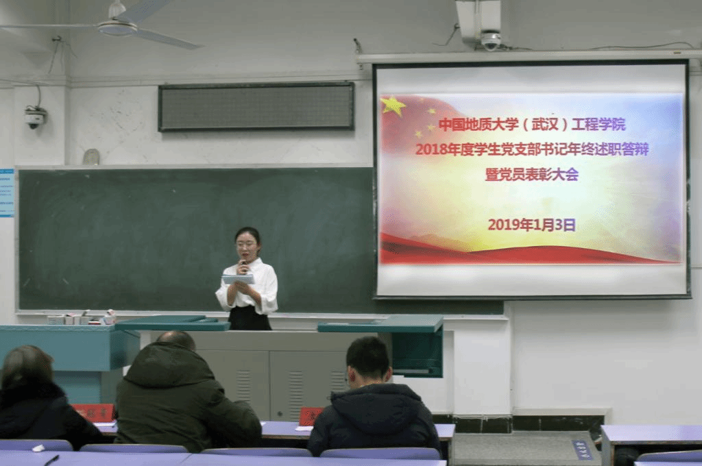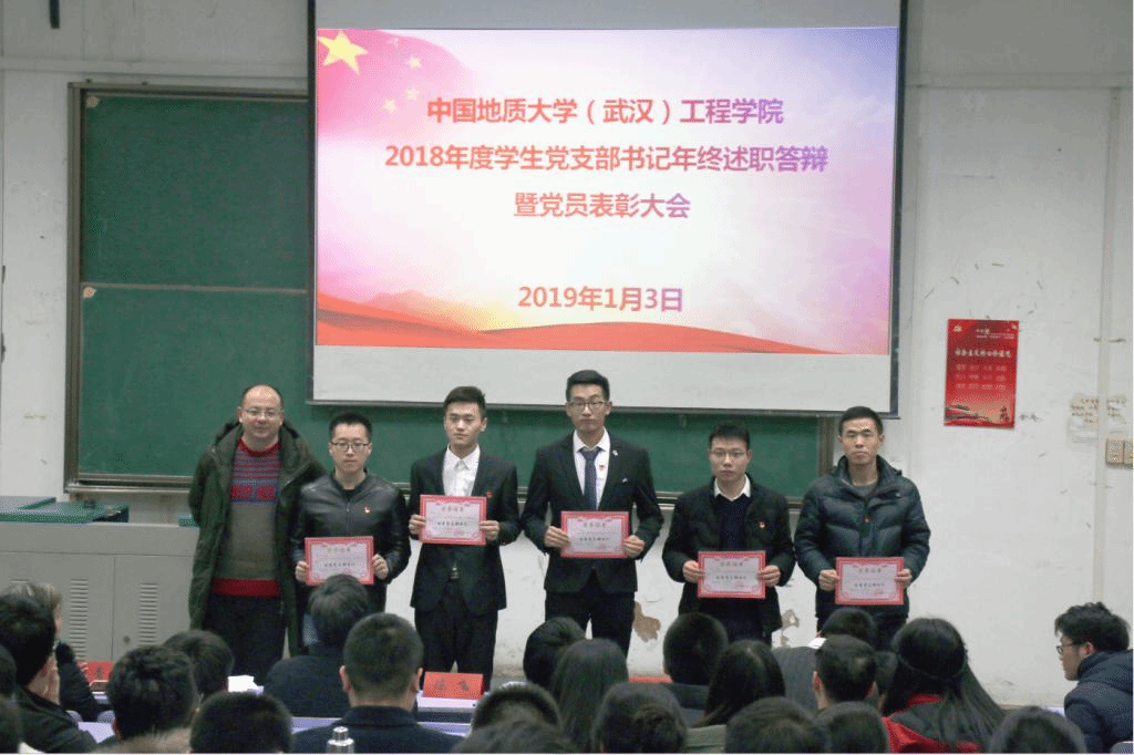 2019年1月3日晚,Beat365正版唯一官网必一2018年度学生党支部书记年终述职答辩暨党员表彰大会在教三楼201和207教室成功举行。