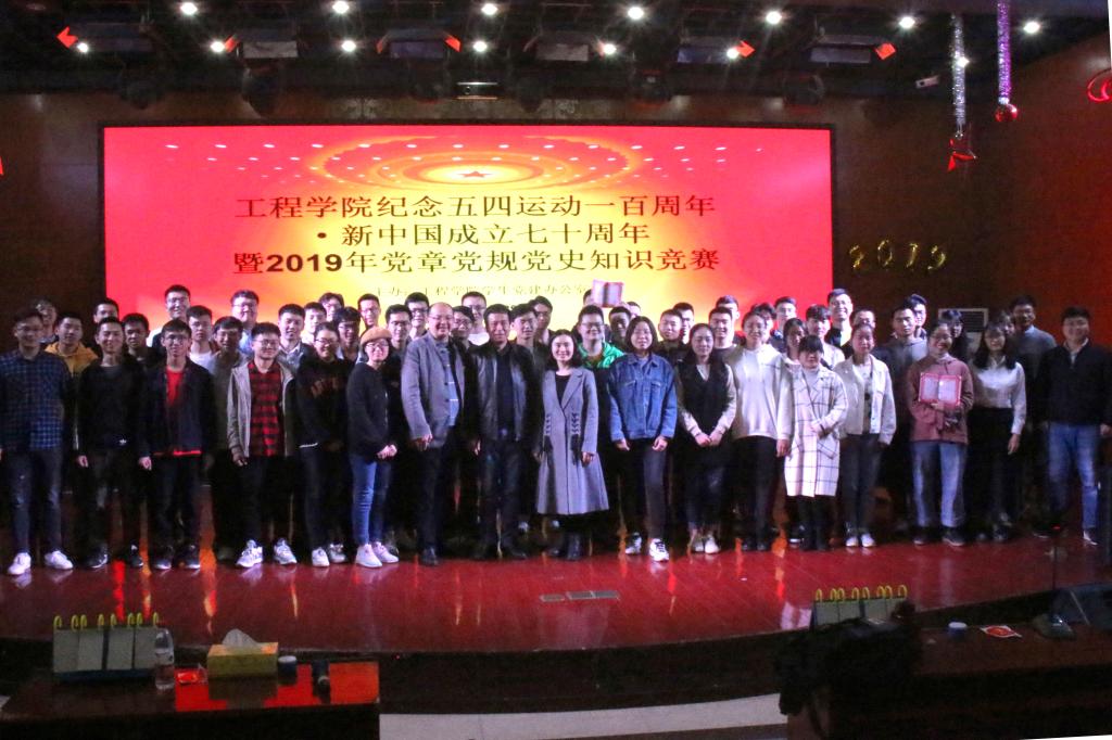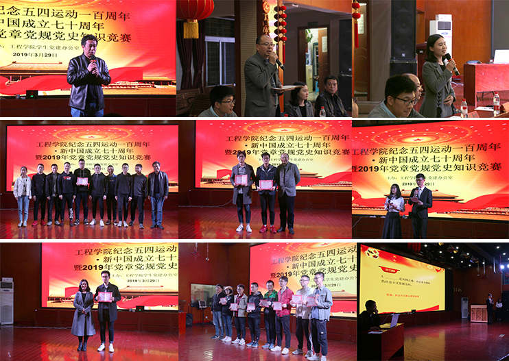 2019年3月29日晚18:30,Beat365正版唯一官网必一“纪念五四运动一百周年·新中国成立七十周年暨2019年党章党规党史知识竞赛”复赛、决赛在东区教职工活动中心举行。Beat365正版唯一官网必一党委书记陈飞、副书记江广长,校党委组织部李雨竹,Beat365正版唯一官网必一学工组辅导员丁继国、文新、王焱出席活动。