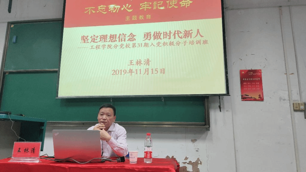 最后王林清向全体入党积极分子提出三点希望:希望大家深入学习贯彻习近平新时代中国特色社会主义思想,不断增强“四个意识”、坚定“四个自信”、做到“两个维护”,切实在学懂弄通上下功夫;希望大家以强烈的政治责任感和历史使命感,保持只争朝夕、奋发有为的奋斗姿态,学知识、重实践、强能力,切实在提高自身素质能力上下功夫;希望大家不忘初心,牢记使命,坚定理想信念,勇作新时代的奋斗者,争取早日加入中国共产党。并强调全体入党积极分子要坚持弘扬“艰苦朴素,求真务实”校训精神;坚持弘扬“严在地大”的校风学风;坚持弘扬“谋求人与自然和诺发展”的价值追求,努力成为担当民族复兴大任,品德高尚、 基础厚实,专业精深、 知行合一的高素质人才。