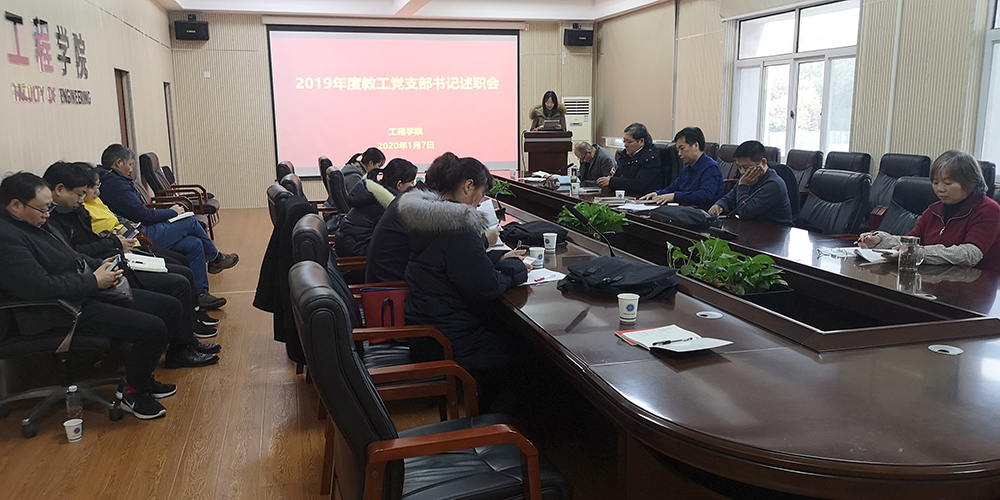 (通讯员:杨冠青)2020年1月7日,在工程楼315会议室召开了教职工党支部书记2019年度工作述职评优大会,学院党政领导、党委委员、各支部书记和各系室主任等参加了会议,会议由学院党委书记陈飞主持。