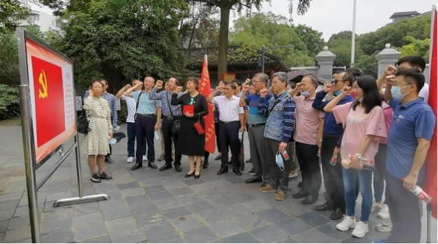 党员们首先参观了中央农民运动讲习所。在农讲所匾牌前,支部为唐朝晖等6名五月份入党的党员过了“政治生日”,并在唐朝晖同志带领下集体重温入党誓词。随后党员们依次参观了农讲所办公室、大教室、操场等复原陈列室。通过农讲所规约、证章、农讲所师生使用过的物品、回忆录等珍贵文物,感受毛泽东同志筹办中央农民运动讲习所的良苦用心和重要意义。在艰苦的条件下,农讲所各项活动开展得次序井然,大家可清晰体会到当时的组织性、纪律性、规范化。正是通过农讲所培养的大批农村革命骨干,在全国掀起了轰轰烈烈的土地革命和农民运动,为中国共产党探索出一条“农村包围城市,武装夺取政权”的中国革命道路奠定了基础。