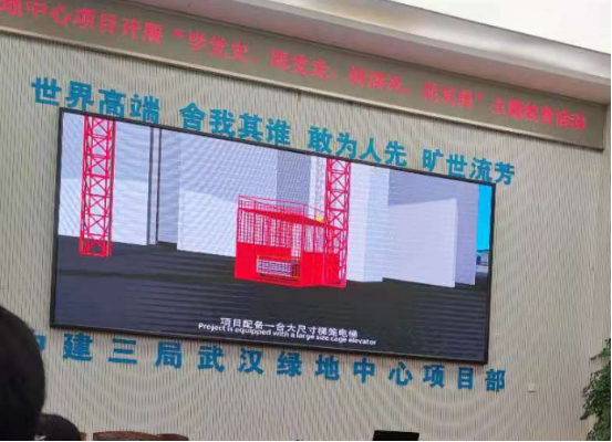 中建三局武汉中心项目党支部书记李江华介绍了武汉绿地中心项目的相关信息,并且展示项目的五个关键施工技术的视频,全面介绍了中建三局在超高层建筑施工中的最新技术。最后,土木工程与力学系党支部与会党员一起参观了在建的武汉第一高楼——武汉绿地中心,并与项目施工技术人员进行了专业技术交流。