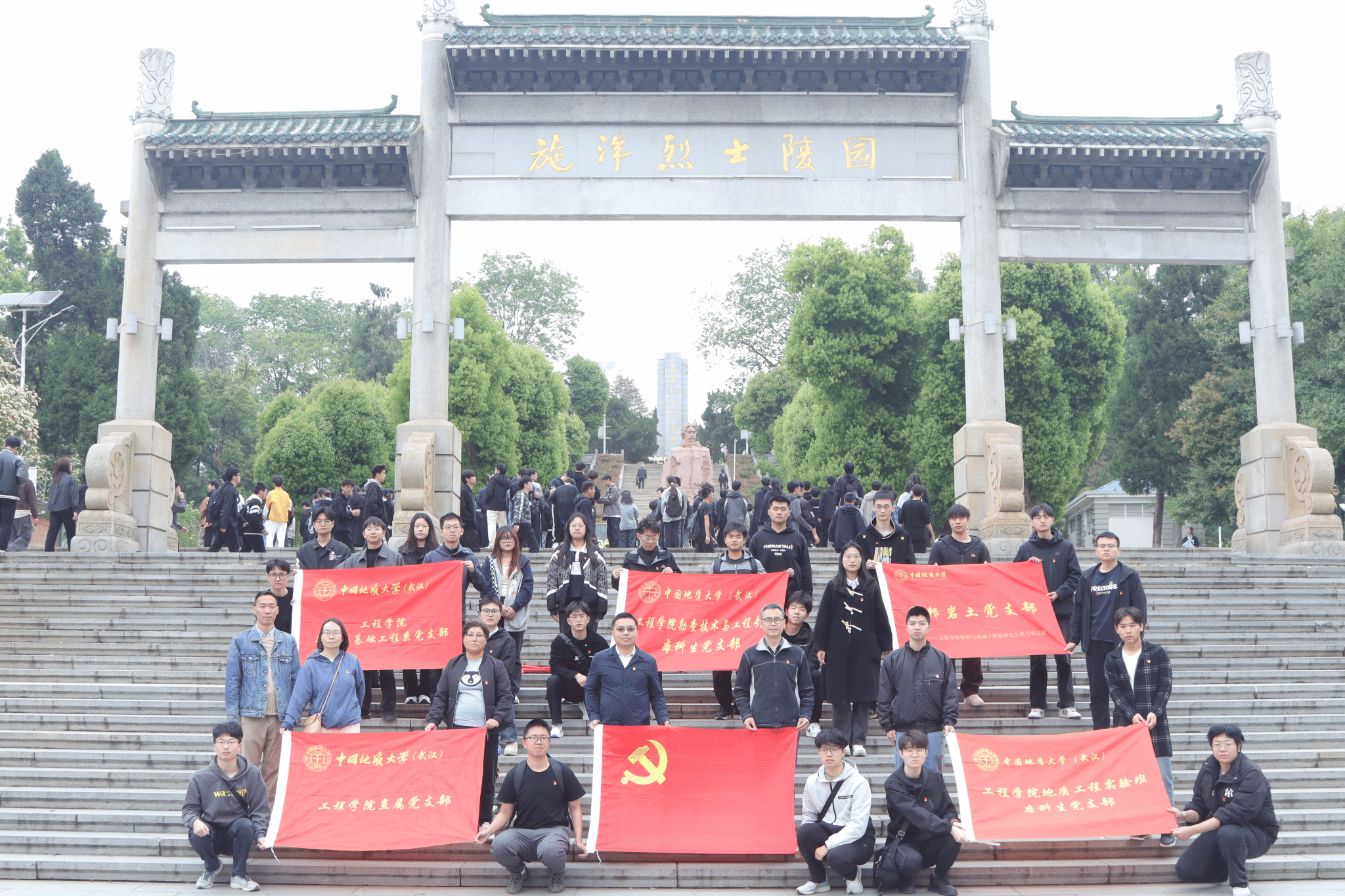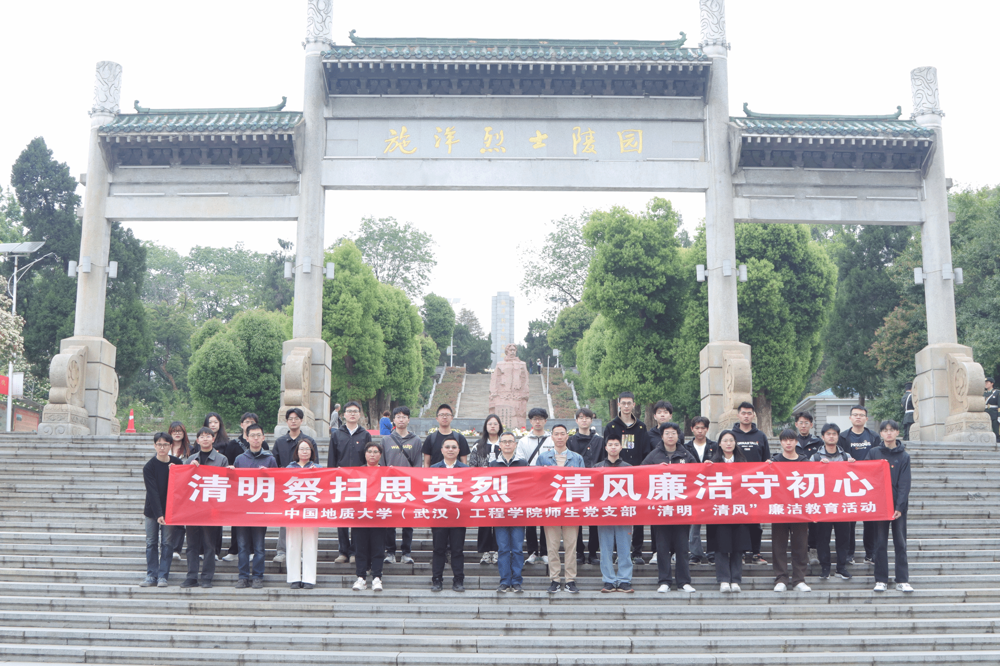 1 师生党员在施洋烈士陵园门前合影留念