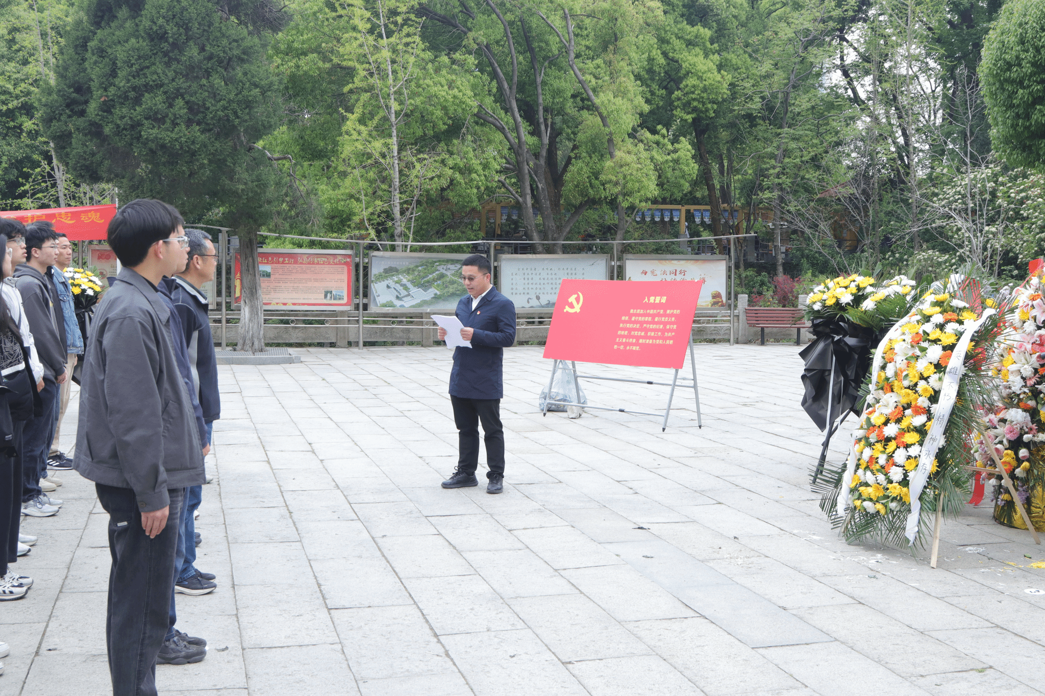 活动伊始,全体师生整齐列队于施洋烈士纪念雕像前,神情庄重肃穆。在激昂的国歌声中,大家向革命先烈致以最崇高的敬意。国歌奏毕,全场默哀一分钟,寄托对先烈的深切缅怀。随后,师生代表向施洋烈士纪念雕像敬献花篮,表达对先烈丰功伟绩的追思。